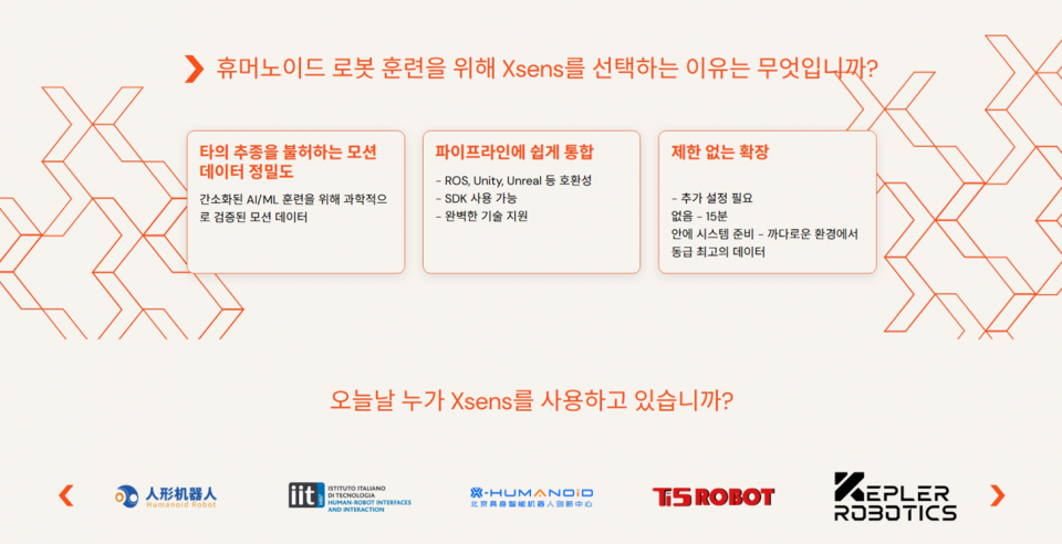기존 MVN Analyze Pro와 SDK로 컨트롤하던 SW와는 달리 ROS 1, ROS 2, NDVIA 및 MuJoCo 통합이 가능하며 저지연 스트리밍 (~20ms)을 지원합니다.