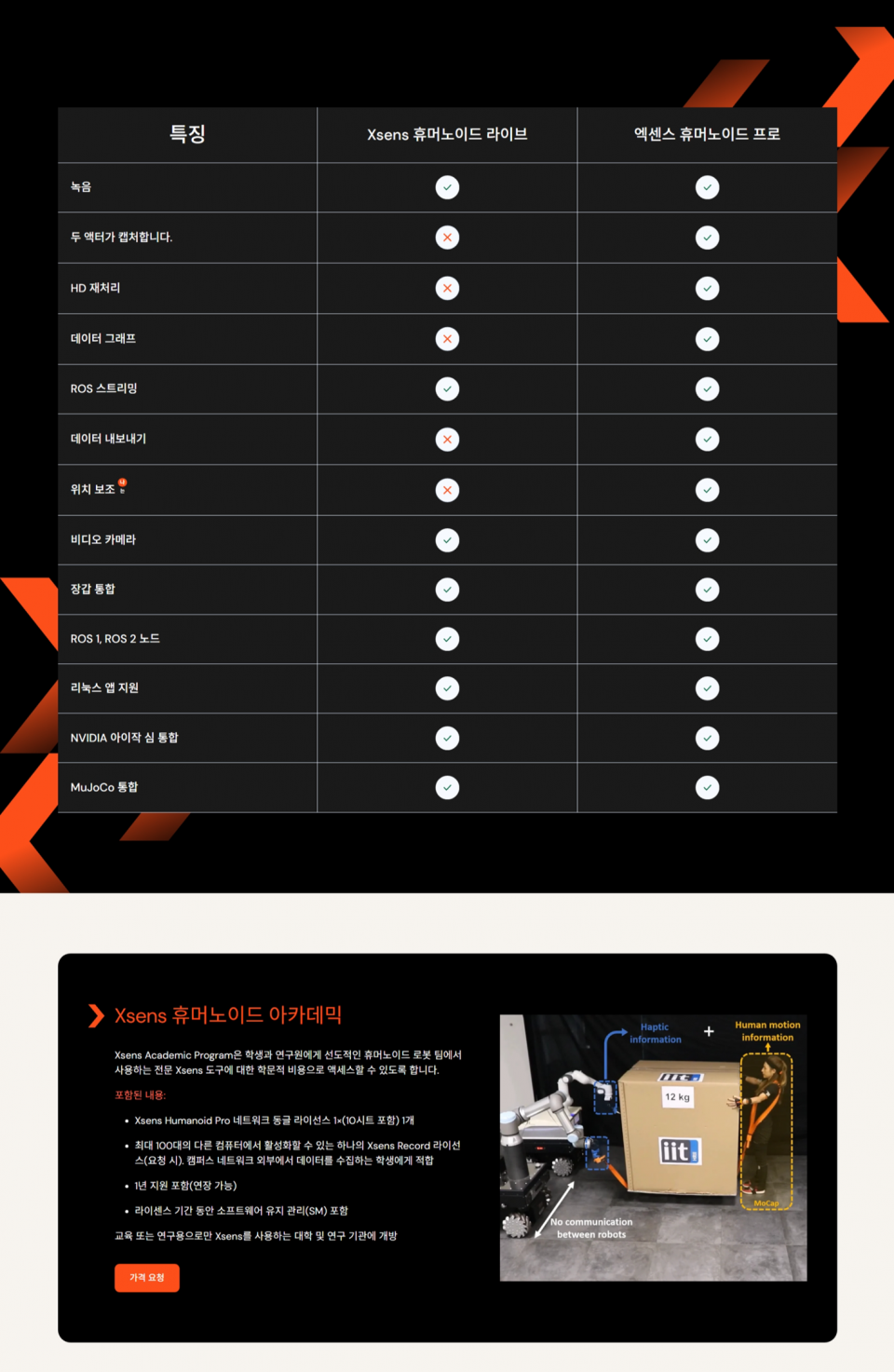 훈련 전용 SW – Xsens Humanoid Live / Pro / Academic