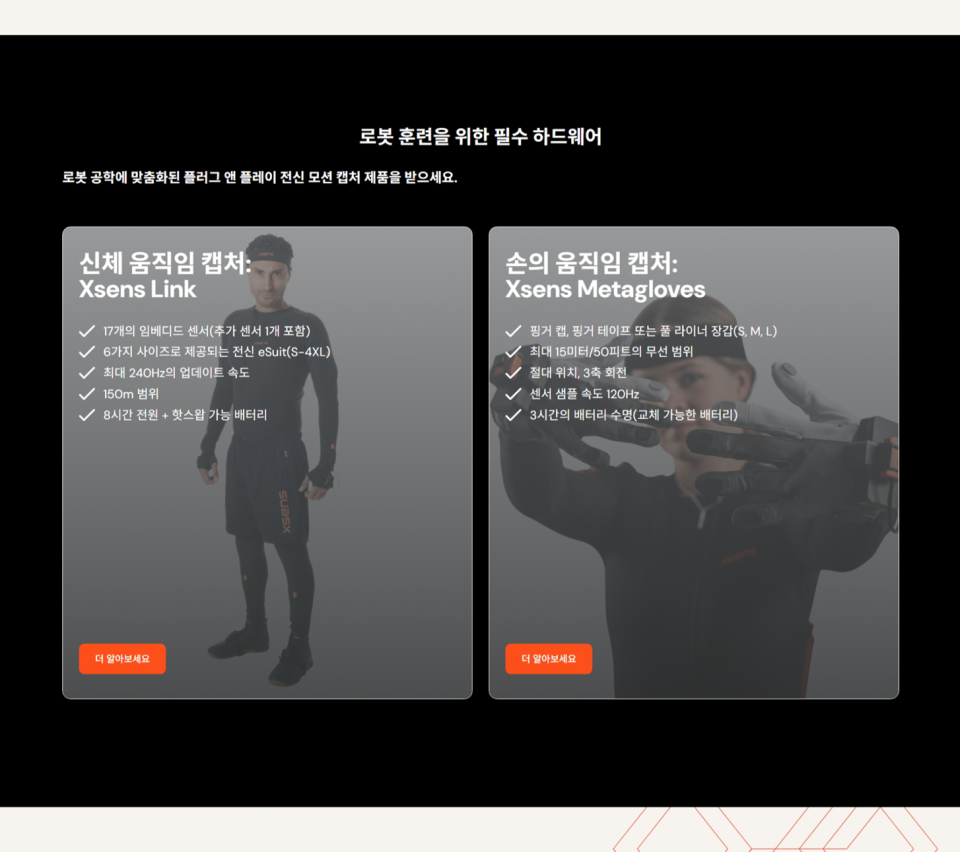 머신러닝(ML) 및 시뮬레이션에 적합한 최고 품질의 모션 데이터를 제공할 수 있습니다.
